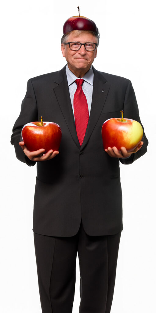 Foundational and Influential: Just as apples are considered a staple fruit and have a foundational place in many cultures’ diets, Bill Gates, through his work with Microsoft, laid the groundwork for the personal computing revolution. Apples are often associated with knowledge and learning, mirroring Gates’ impact on technology and education through his philanthropic efforts with the Bill & Melinda Gates Foundation.