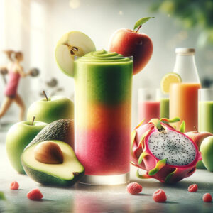 Introducing the “Triple Essence Smoothie” – a trendy, health-focused beverage that combines the unique flavors and nutritional benefits of apples, avocados, and dragon fruit into a delicious, vibrant drink. This smoothie caters to the wellness-conscious consumer, drawing inspiration from the influential tech leaders Bill Gates, Jeff Bezos, and Elon Musk, and their likened fruits, to create a blend that’s not only good for you but also symbolizes innovation, versatility, and foundational health.